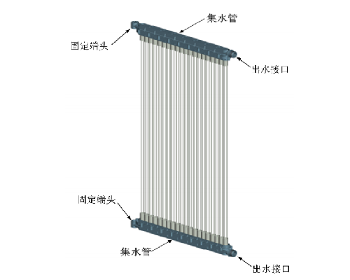 集水裝置位于膜架上部,由集水支管、集水總管和出水管組成