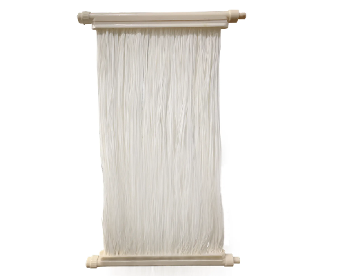 2.安裝或移動膜組件時,應(yīng)用雙手拿膜組件兩端的集水管,避免直接拿纖維膜絲或只拿一端集水管而造成纖維膜絲受力損壞