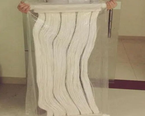 1.簾式膜組件上下兩頭集水管間隔比膜絲天然長度短15-30mm,屬于正?,F(xiàn)象